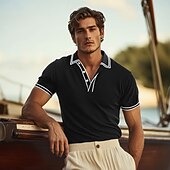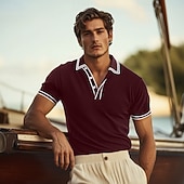 More information about Men's Golf Shirt Pique Polo Shirt Work Business Ribbed Polo Collar Classic Short Sleeve Basic Modern Solid Color Buttons Ribbed Spring & Summer Regular Fit Black Wine Navy Blue Royal Blue Golf Shirt
