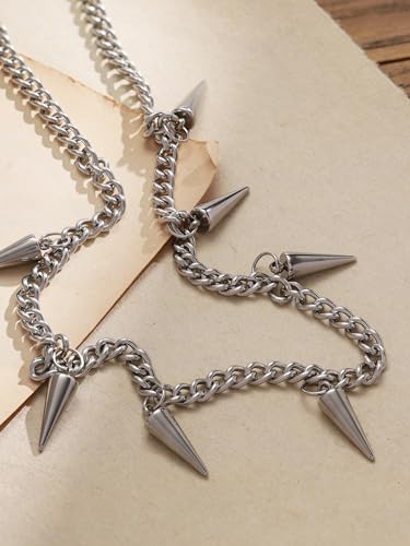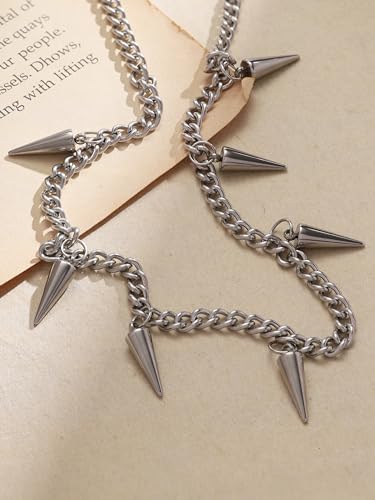 Sacina Silver-tone Chunky Chain Spike Necklace, Grunge Necklaces, Punk Necklace, Gothic Goth Necklace, Emo Necklace, Christmas New Year Jewelry Gift For Women 5