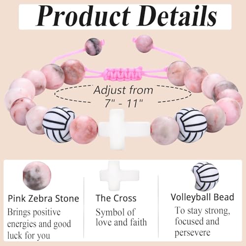 • Material: This volleyball stuff for girls beaded bracelet are made of cross charm, zebra stone and two volleyballs. Paired with volleyball girls bracelet, will help to release stress and keep a good mood