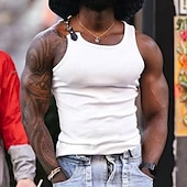 More information about Men's Tank Top Undershirt Sleeveless Shirt Muscle Shirt Sleeveless Crew Neck Summer Color Block Pit Strip Fashion Designer Muscle Buckle Outdoor Going out Gym Black White Top Tee for Men