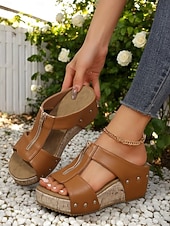 More information about Women's Rivet Wedge Sandals – Peep-Toe Cork Platform Shoes with Zipper Closure for Casual & Summer Wear