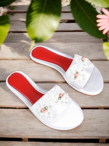 Women's Flat Bridal Slippers – Elegant Lace & Pearl Embellished Flats with Floral Detail, Romantic Indoor Wedding Shoes for Bride & Formal Events 6