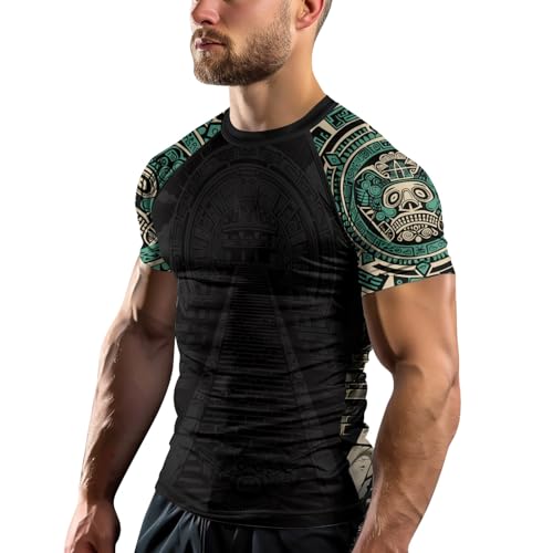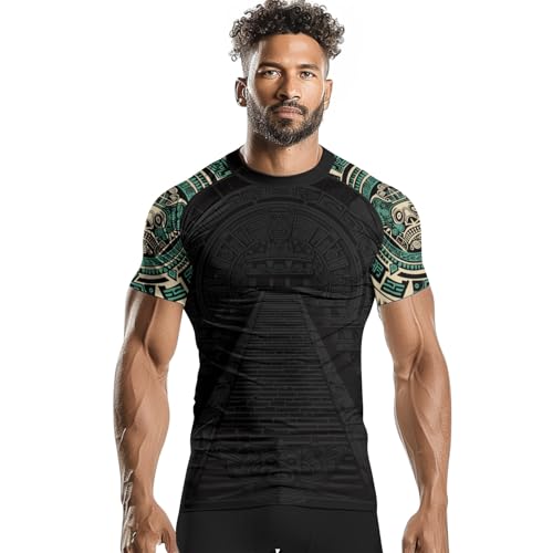 HOT ! Aztec Men's Short Sleeve Rash Guard – MMA BJJ Jiu Jitsu Grappling Workout Performance Baselayer