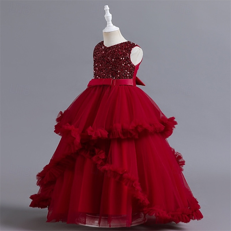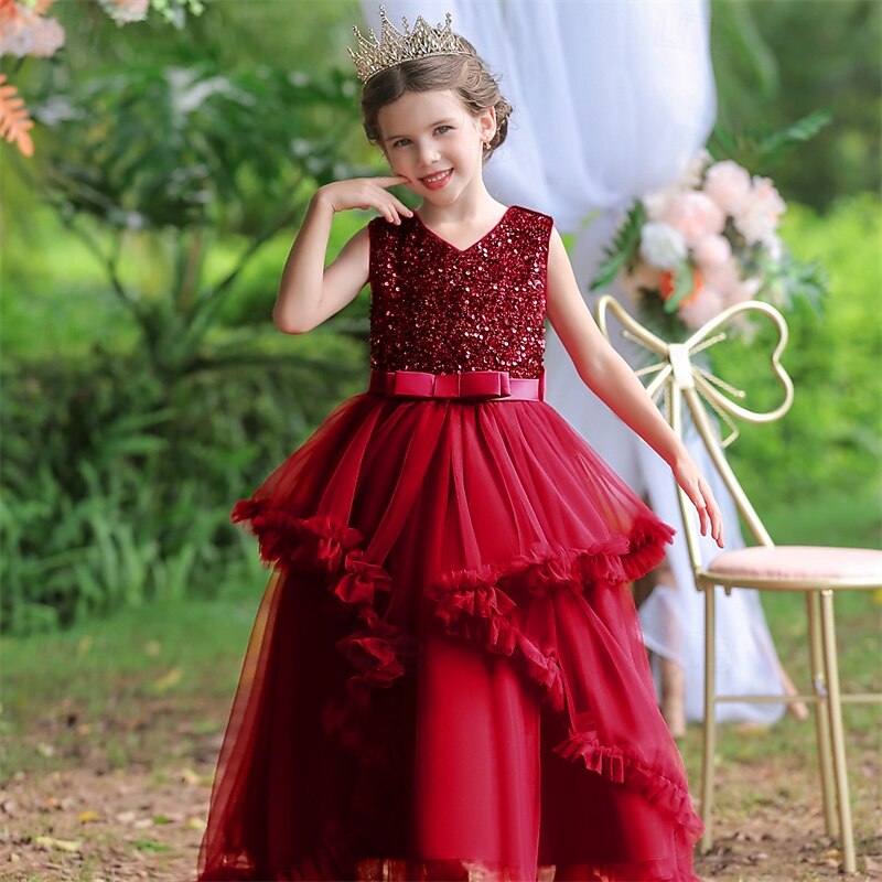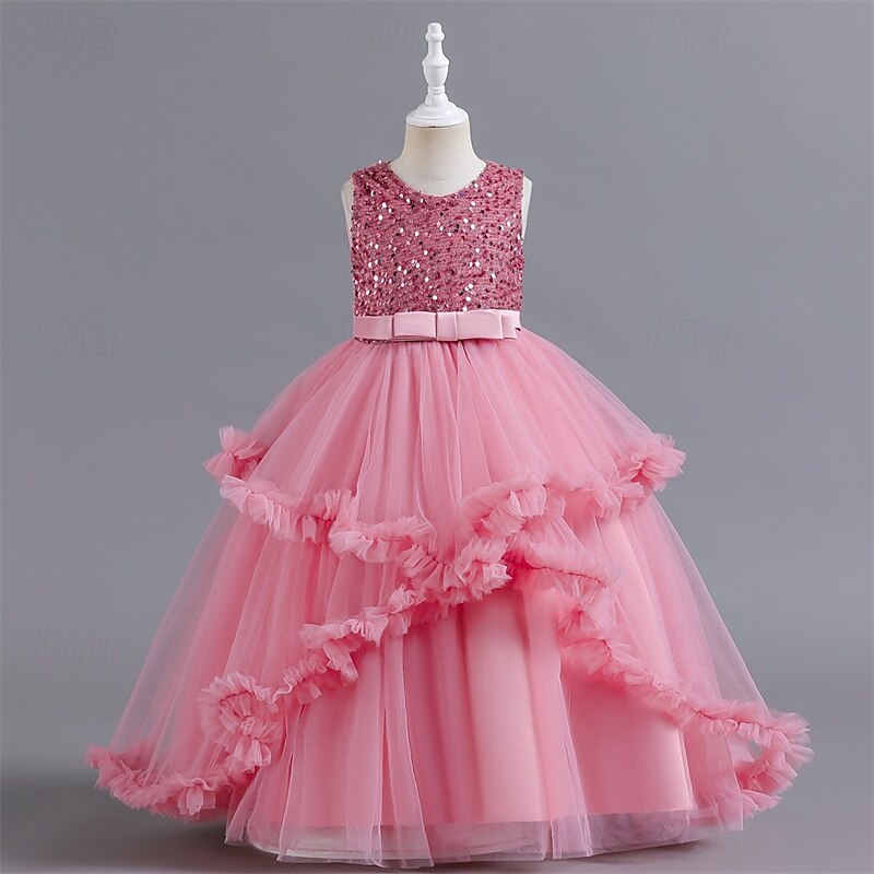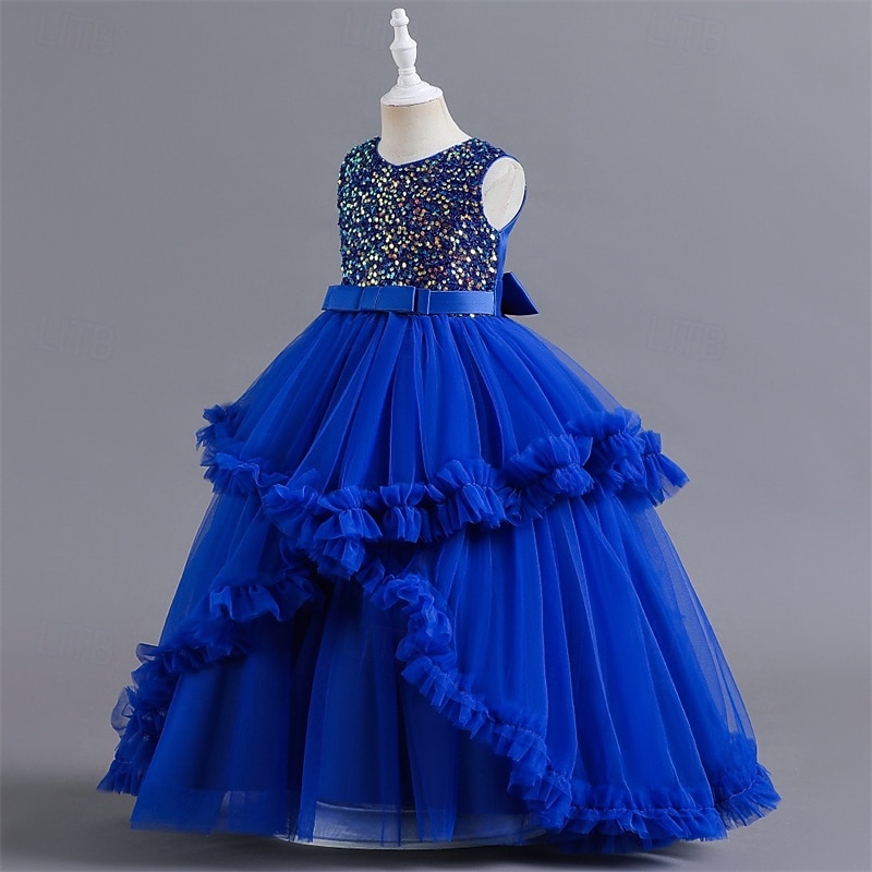 More information about Kids Girls' Party Dress Solid Color Sleeveless Performance Christmas Birthday Tie Knot Beautiful Sweet Polyester Maxi Party Dress Swing Dress A Line Dress Summer 4-12 Years Pink Wine Royal Blue
