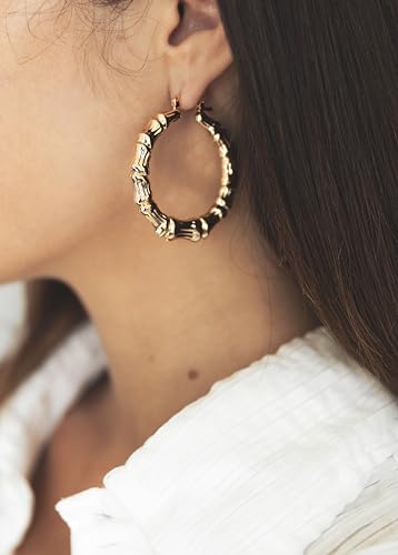 HOT ! Barzel 18k Gold Plated Bamboo Hoop Earrings for Women, 40MM X 40MM - Made In Brazil