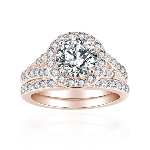 Moissanite Wedding Ring Set for Women 1CT Center Classic Round Moissanite Bridal Ring Set Engagement Ring Set Women's Bridal Set 925 Sterling Silver 10K 14K 18K Gold 6