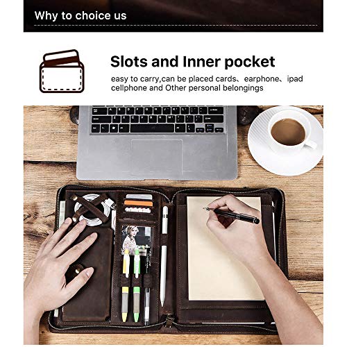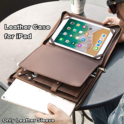 Business Portfolio Leather, Hiram Vintage Leather padfolio case Pouch for iPad Pro 10.5 Air 3 11 10.2" Tablet Protector for iPad 9.7 Air 2 Zippered Journal Holder(Coffee) 5