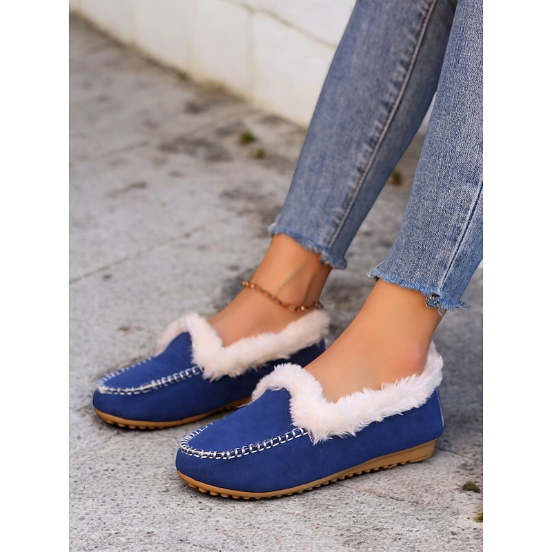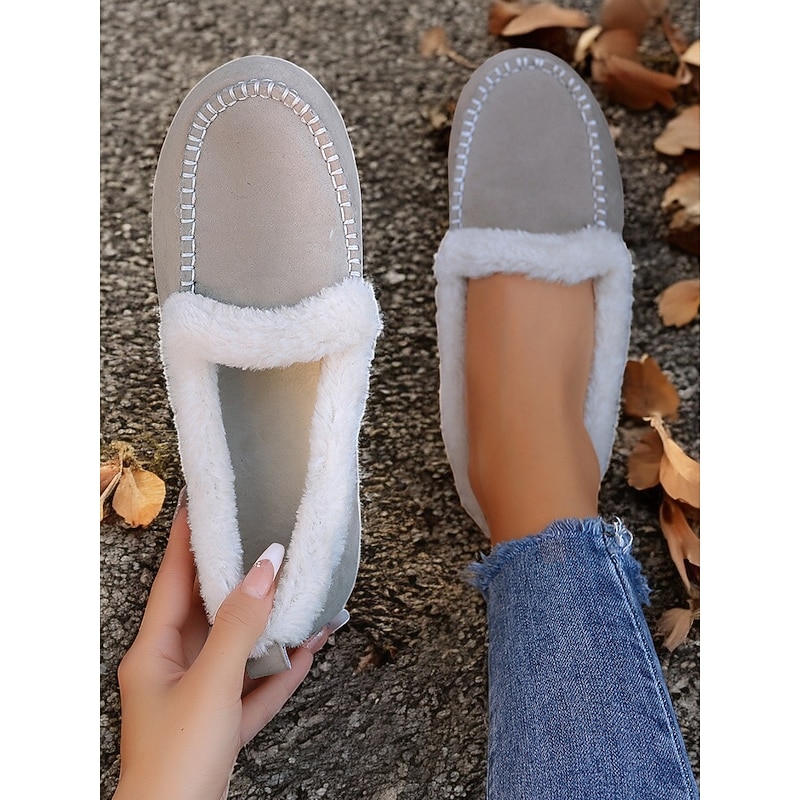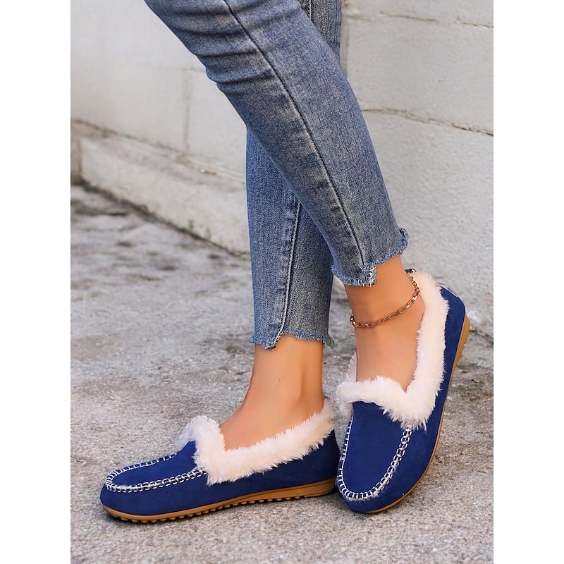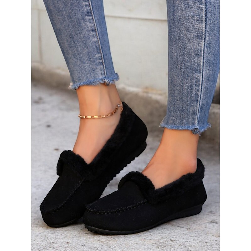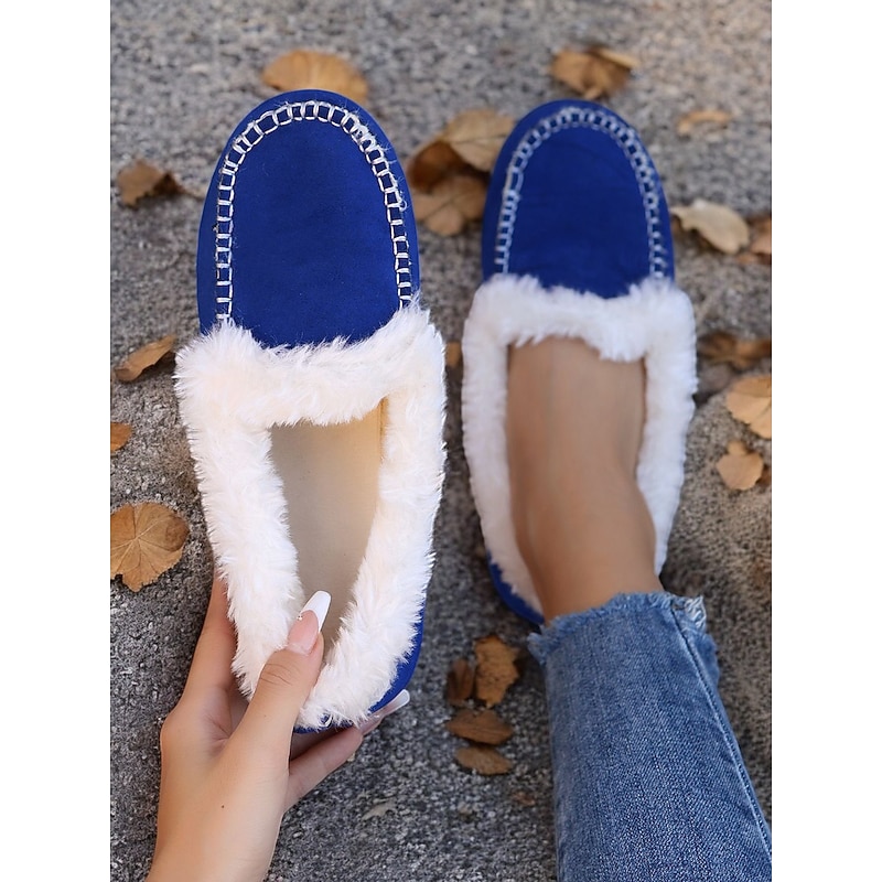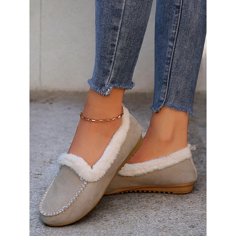 Highlights [Faux Suede Moccasin Slippers Highlights] [Fabric] : Expertly crafted from premium faux suede, these moccasin slippers offer a soft and luxurious touch. The plush faux fur lining ensures warmth and comfort, making them an excellent choice for cold weather wear. [Fit] : Designed with a cozy slip-on style, these slippers promise a relaxed fit, suitable for lounging in comfort. The classic round toe shape adds to their casual and comfortable appeal, making them perfect for daily wear. [Design Details] : The slippers feature traditional whipstitch detailing around the toe area, adding a touch of classic charm. The rich brown color pairs beautifully with the white faux fur lining, resulting in a sophisticated and timeless aesthetic. [Occasions] : Perfect for indoor wear, these slippers are ideal for relaxing at home. Whether you're enjoying a lazy weekend or winding down after a long day, they deliver a combination of warmth and style. [Size Range] : Available in a variety of sizes, these slippers cater to a wide fit range from US5.5 to US10.5, ensuring the perfect fit for every wearer. The detailed size chart provided aids in selecting the optimal size for comfort and style.