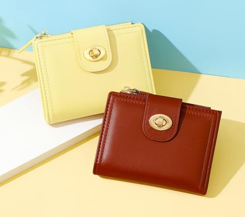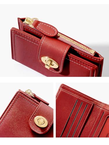 HOT ! Small Wallet for Women Girls Aesthetic Bifold RFID Blocking Cute Card Holder Leather Mini Short Purse with Zipper Coin Pocket-Flower Lock -red