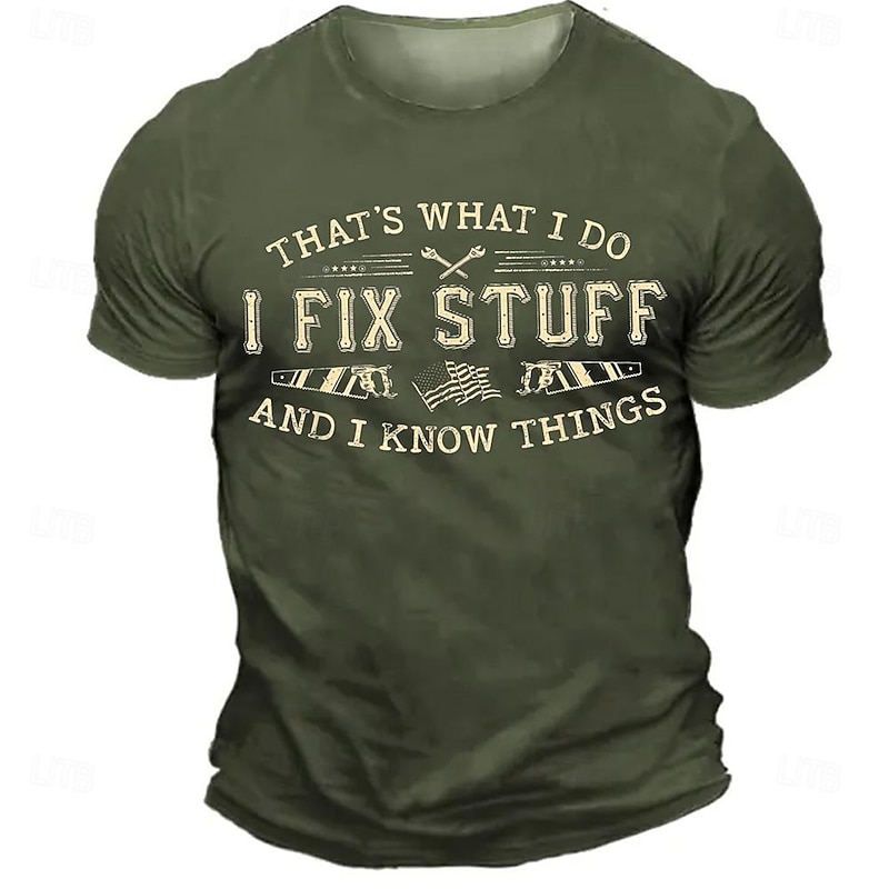 HOT ! Men's Graphic T-Shirt - Funny 'I Fix Stuff & Know Things' Work Humor Short Sleeve Tee for Handymen & Trades