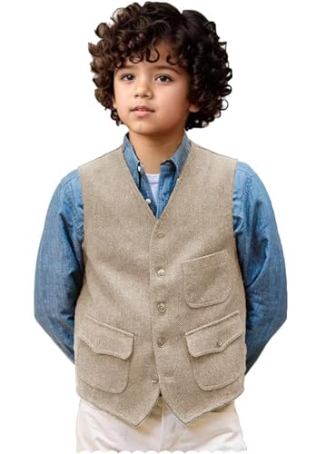 More information about Retro Boys Vest Tweed Herringbone Kids Suit Vest Wedding Ring Bearer Outfit Boy Sleeveless Waistcoat