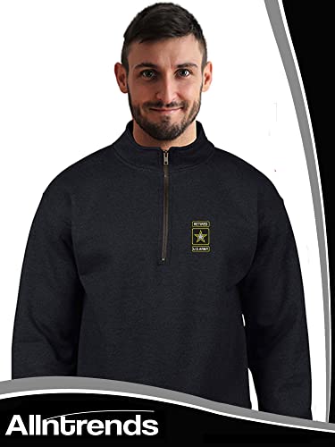 HOT ! ALLNTRENDS Adult Zip Collar Sweatshirt USA Retired Army Embroidered Military Top (L, Navy Blue)