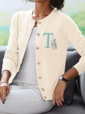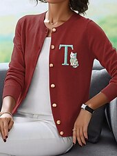 More information about Women's Cardigan Elegant Vintage Daily Graphic Animal Letter Ribbed Crew Neck Buttons Knitted Long Sleeve Regular Tops Knit Outdoor Home Work Black Red Spring Fall
