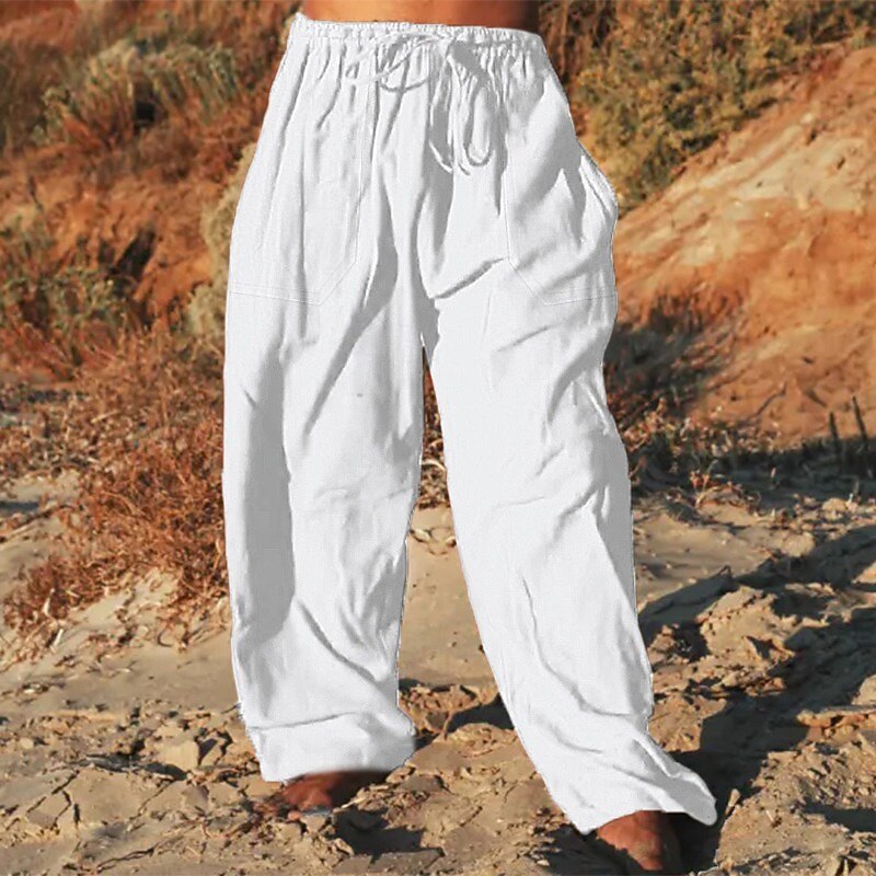Men's Trousers Summer Pants Beach Pants Pocket Plain Comfort Soft Outdoor Daily Going out Fashion Casual White Navy Blue 9