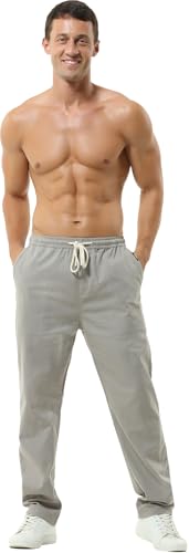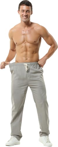 Hoerev Men Casual Beach Trousers Linen Summer Pants 6