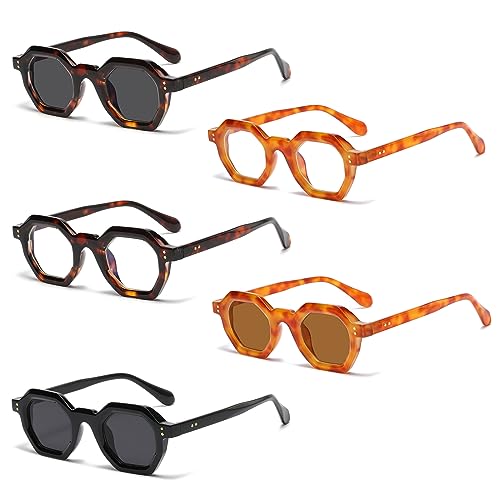 LJCZKA Retro Octagon Sunglasses for Women Men Trendy Unisex Vintage Polygon Shades Small Square Sun Glasses 5