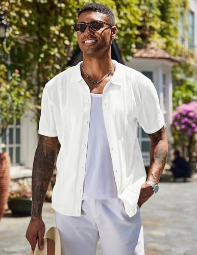 COOFANDY Men's Knit Shirts Short Sleeve Button Down Polo Shirt Vintage Casual Beach Shirt Summer Tops 2