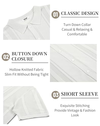 COOFANDY Men's Knit Shirts Short Sleeve Button Down Polo Shirt Vintage Casual Beach Shirt Summer Tops 6