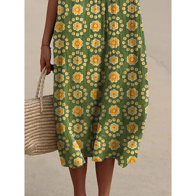 HOT ! Women's Maxi Dress Linen-Inspired Dresses Casual Dress Cotton Linen Dress Swing Dress Casual Daily Regular Fit Floral Half Sleeve V Neck Green Summer Spring Fall