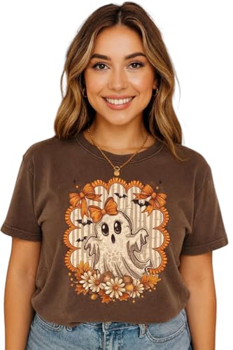 More information about Vintage Floral Ghost Halloween Shirt – Cute Spooky Fall Graphic Tee – Bow Aesthetic Comfort Colors T-Shirt