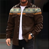 More information about Men's Tribal Geometry Ethnic Shirt Shirt Jacket Overshirt Long Sleeve Vintage Casual Tribal Outdoor Street Casual Daily Fall & Winter Turndown Buttons Pocket Print Brown khaki