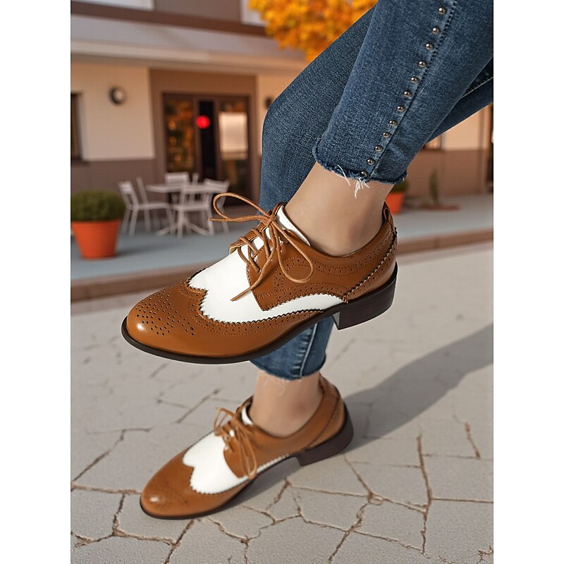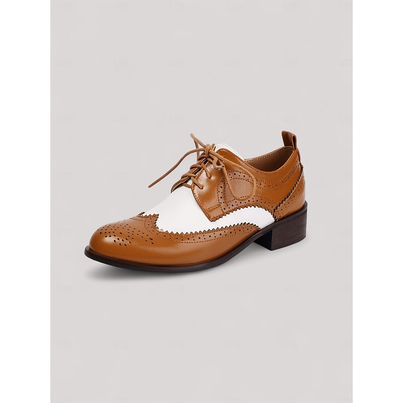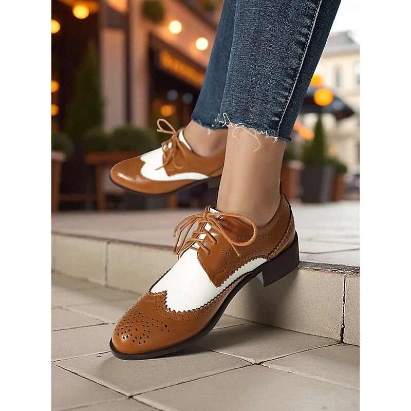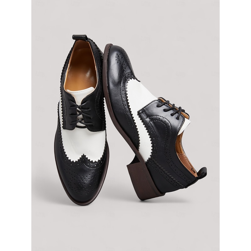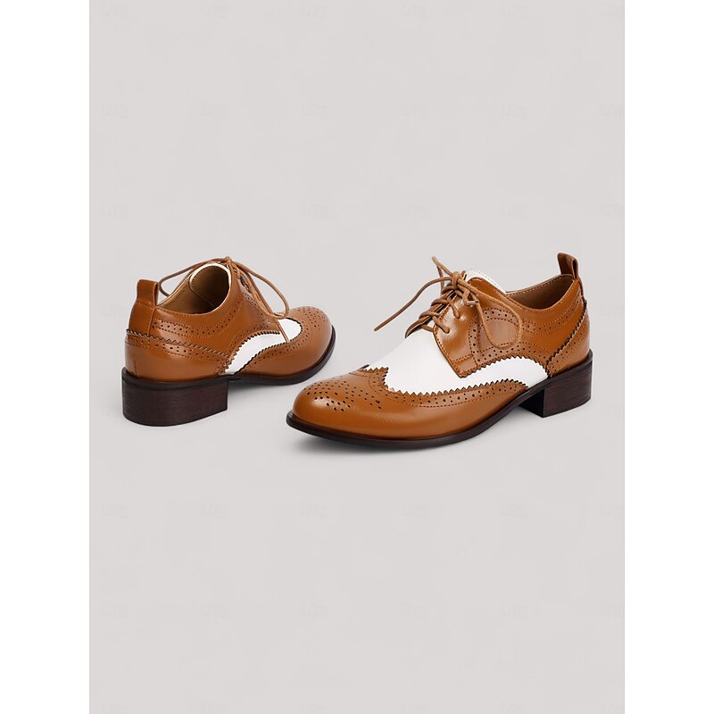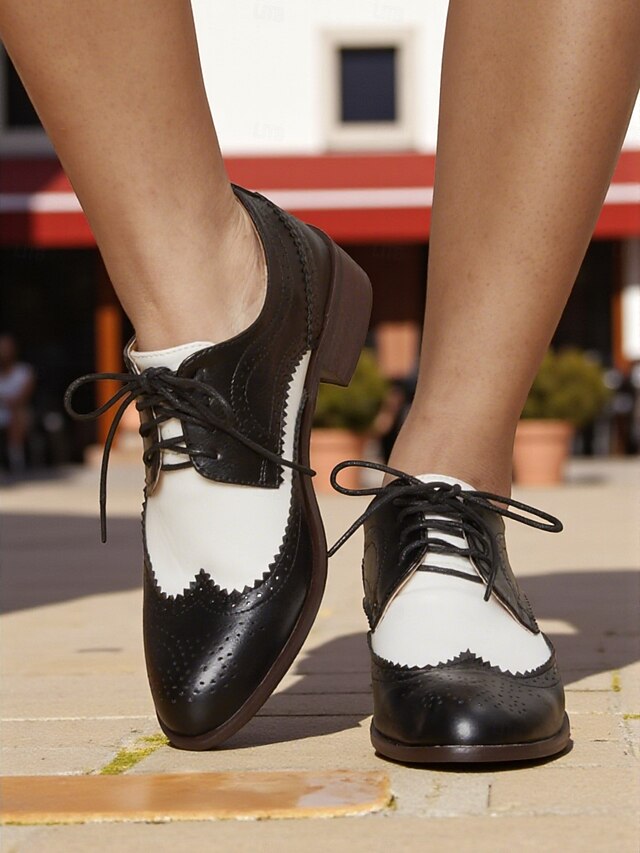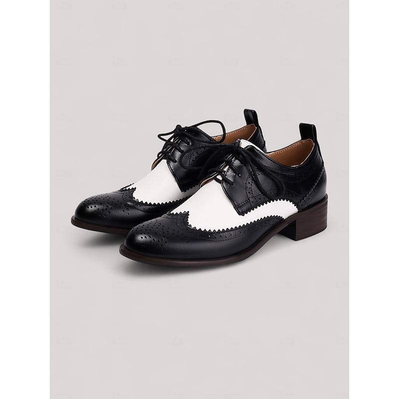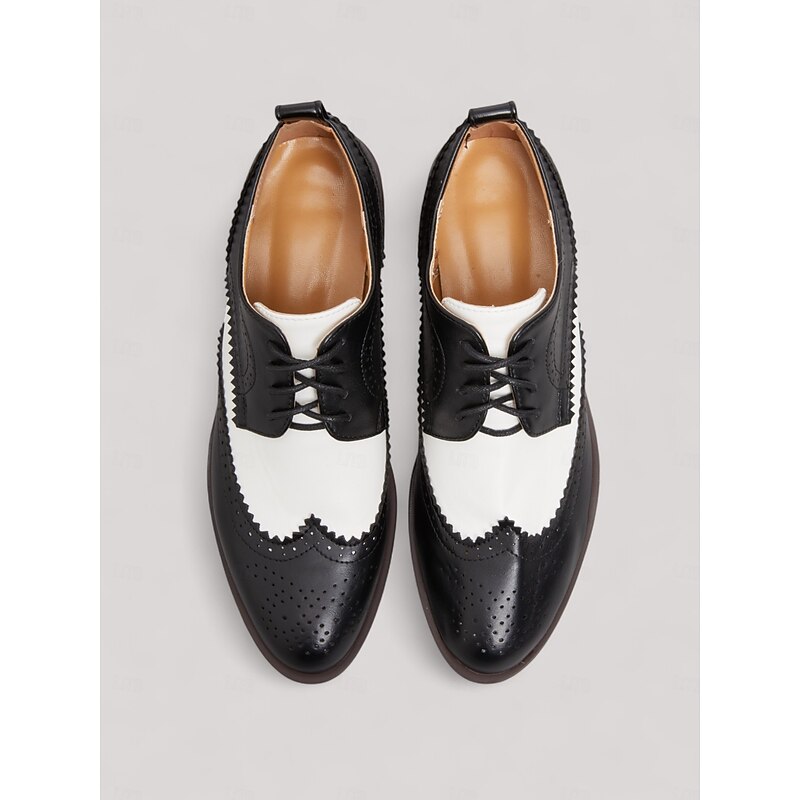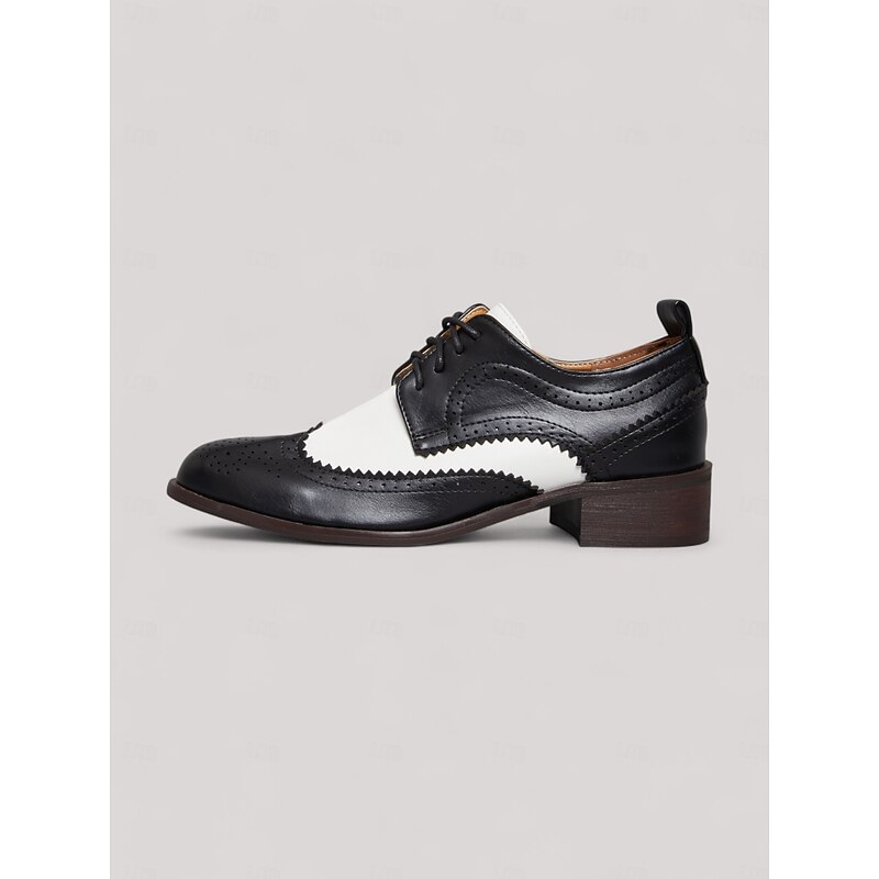 HOT ! Women's Black and White Wingtip Oxford Shoes - 1950s Vintage Brogue Lace-Up Leather Dress Shoes for Office, Casual Outings,and Retro-Inspired Fashion