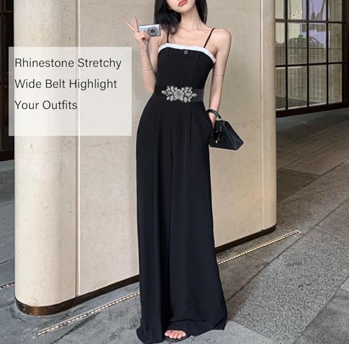 COTIM COYIN Women's Rhinestone Stretchy Wide Elastic Belt, Fashion Waist Accessory for Dresses 1