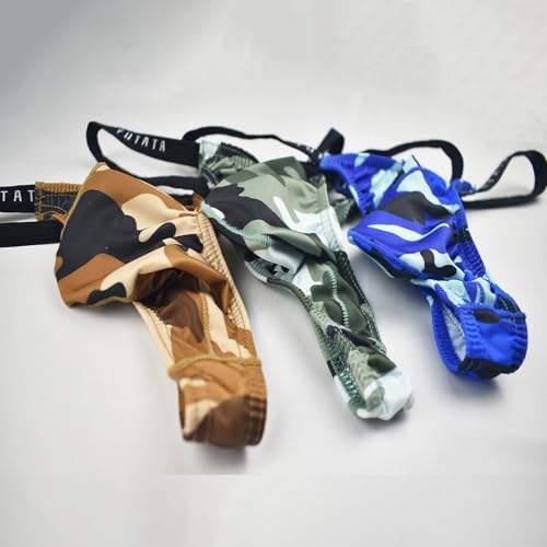Men's Sexy Low Rise G-string Thong Camouflage Stretch Pouch T-back Thong Underwear Briefs 3