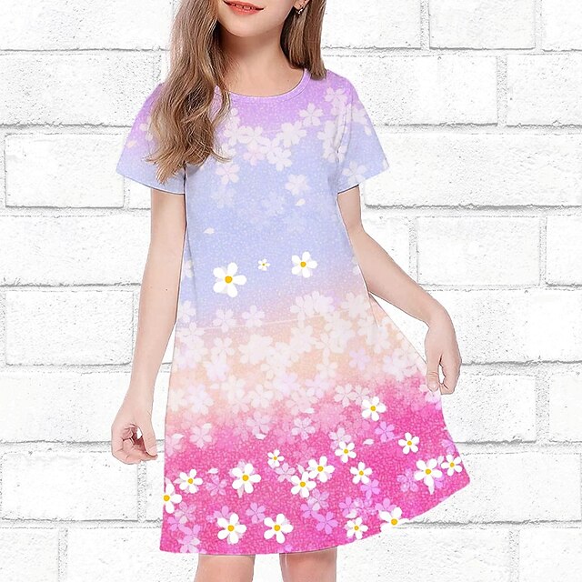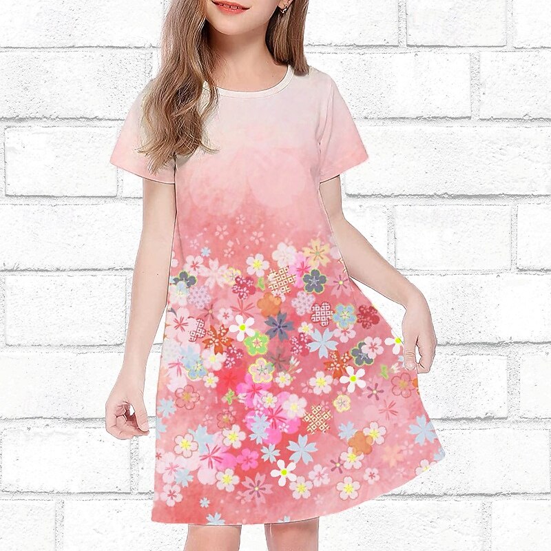 Girls' 3D Floral Dress Short Sleeve Summer Spring Vacation Daily Holiday Princess Beautiful Sweet Kids 4-12 Years Casual Dress Knee-length Regular Fit 9