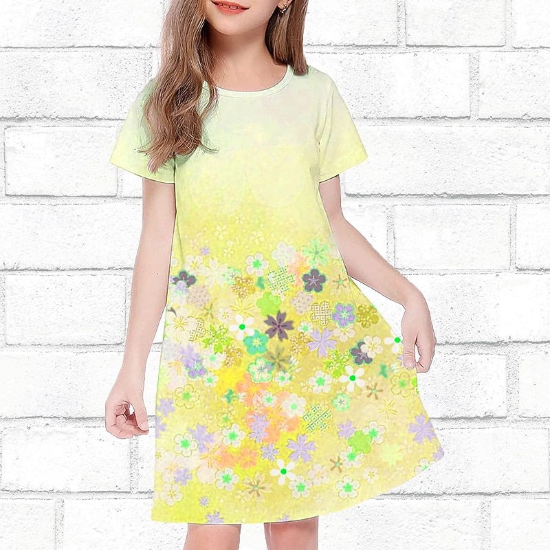 More information about Girls' 3D Floral Dress Short Sleeve Summer Spring Vacation Daily Holiday Princess Beautiful Sweet Kids 4-12 Years Casual Dress Knee-length Regular Fit