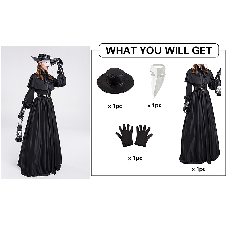More information about Punk & Gothic Steampunk 17th Century Dress Fancy Costume Plague Doctor Plus Size Rivet Solid Colored Sheath / Column Standing Collar Fancy Dress Women's Halloween Carnival Party Masquerade LARP