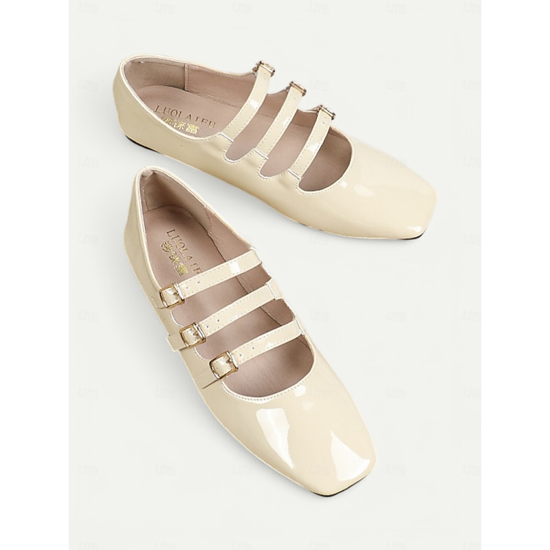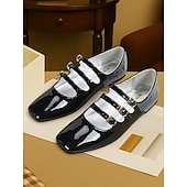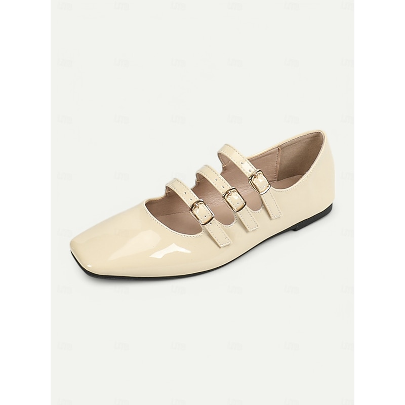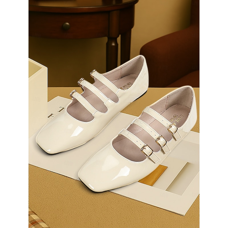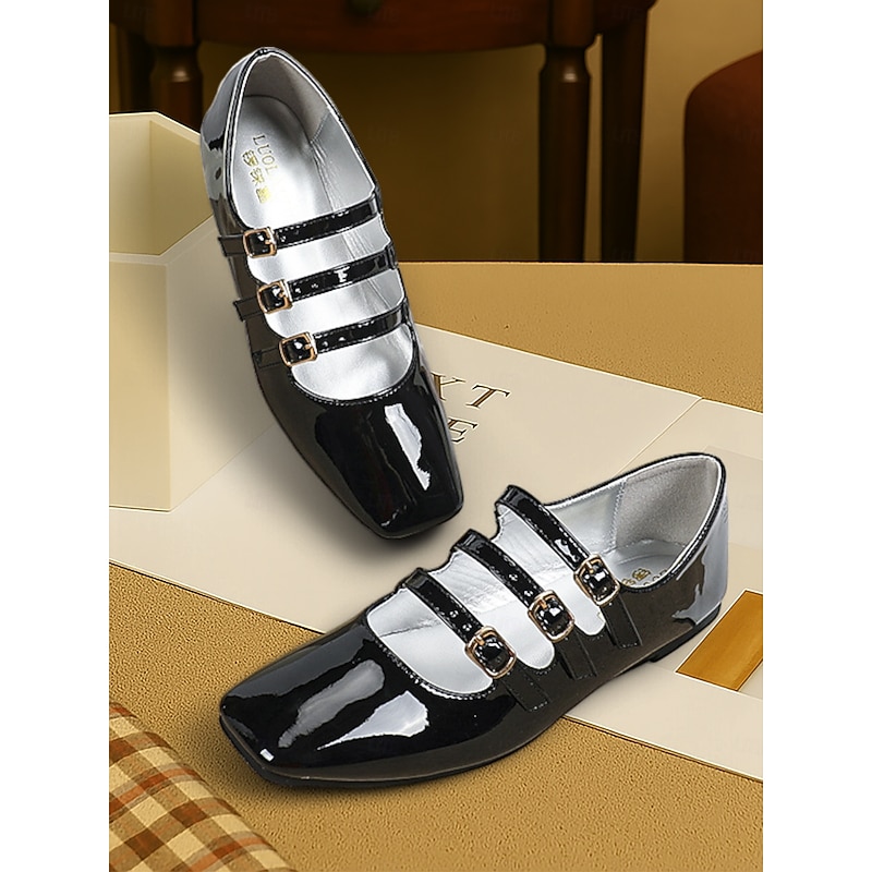 Women's 1930s Vintage Red Patent Leather Mary Jane Flats with Triple Buckle Straps – Retro Classic Dress Shoes for Parties and Daily Wear 19