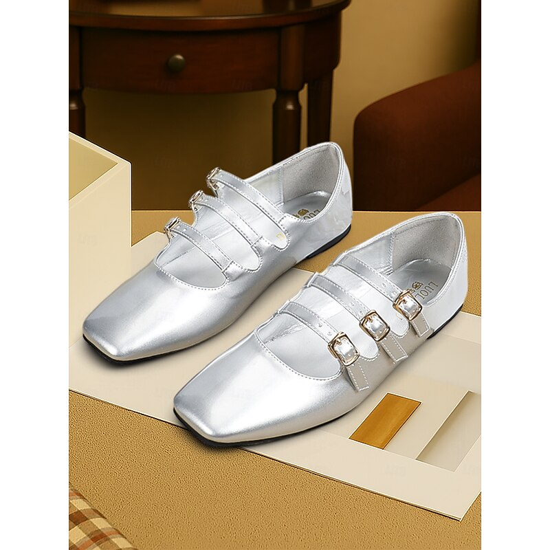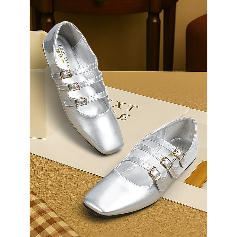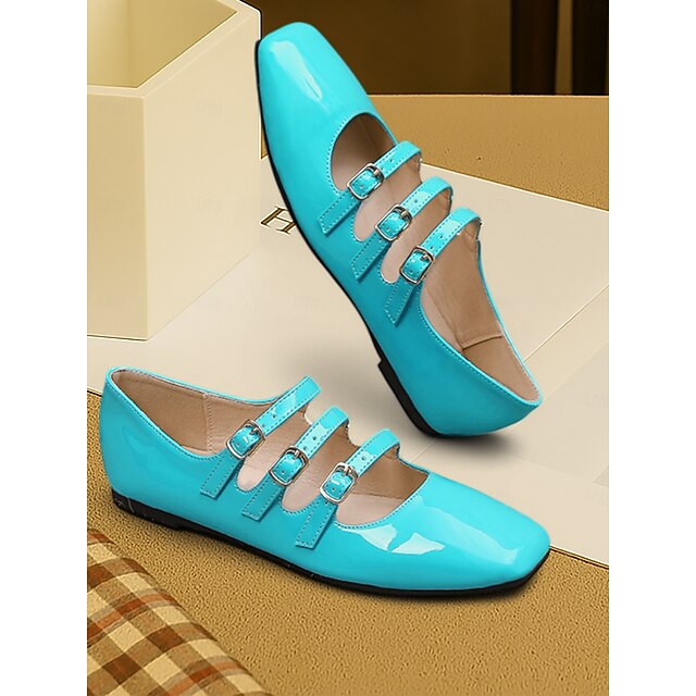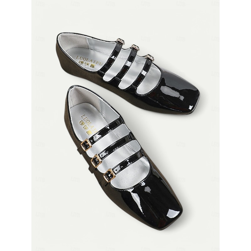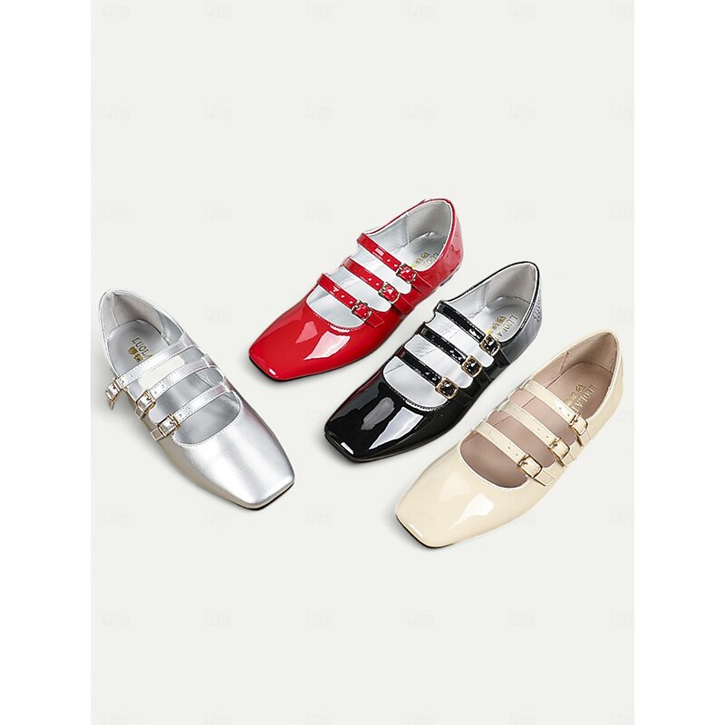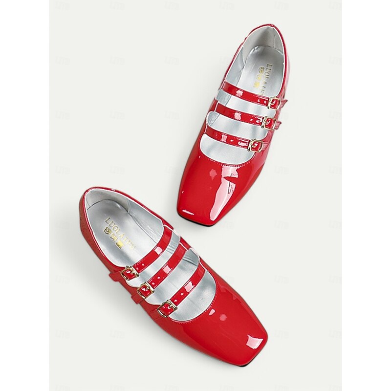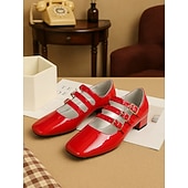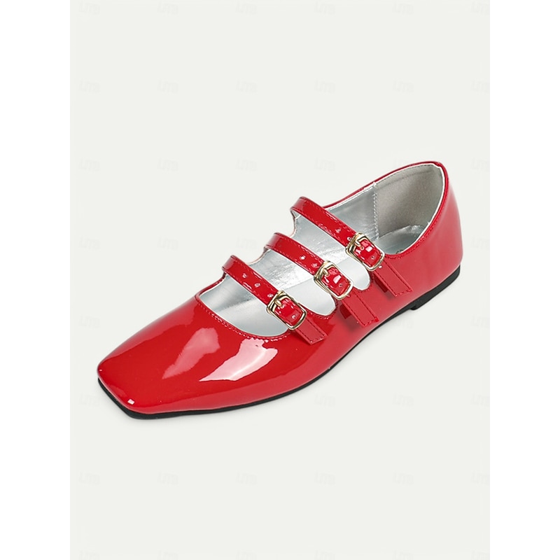 Women's 1930s Vintage Red Patent Leather Mary Jane Flats with Triple Buckle Straps – Retro Classic Dress Shoes for Parties and Daily Wear 24