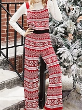 More information about Women's Normal Jumpsuit Active Snowflake Sleeveless Crew Neck Pocket Print Christmas Vacation Regular Fit Red Fall
