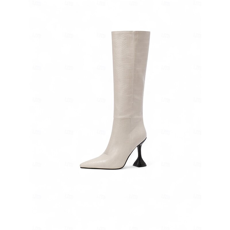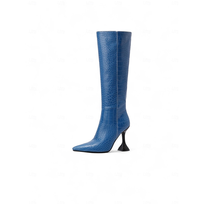 More information about Women's Black Crocodile Pattern Knee High Boots, Genuine Leather Pointed Toe Stiletto Heel Boots, Urban Fashion Style for Women, Perfect for City Chic and Stylish Outfits