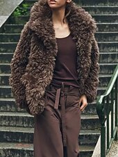 More information about Women's Teddy Coat Faux Fur Coat Warm Comfortable Furs & Leathers Casual Plain Vacation Street Casual Going out Regular Turndown Regular Fit Long Sleeve Outerwear Brown Fall Winter