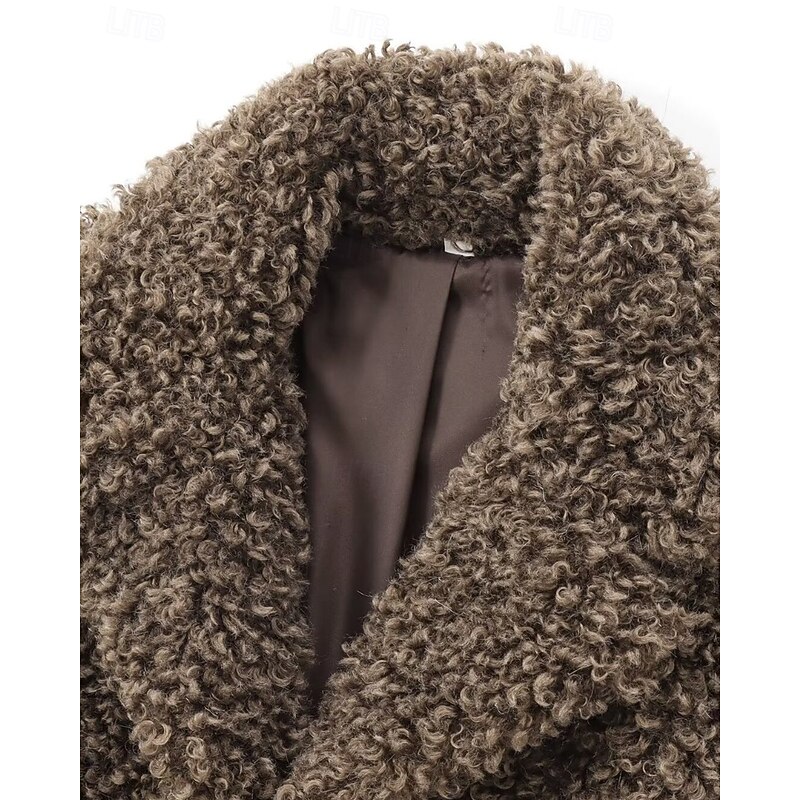 Women's Teddy Coat Faux Fur Coat Warm Comfortable Furs & Leathers Casual Plain Vacation Street Casual Going out Regular Turndown Regular Fit Long Sleeve Outerwear Brown Fall Winter 11