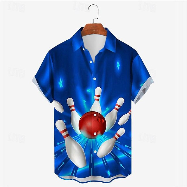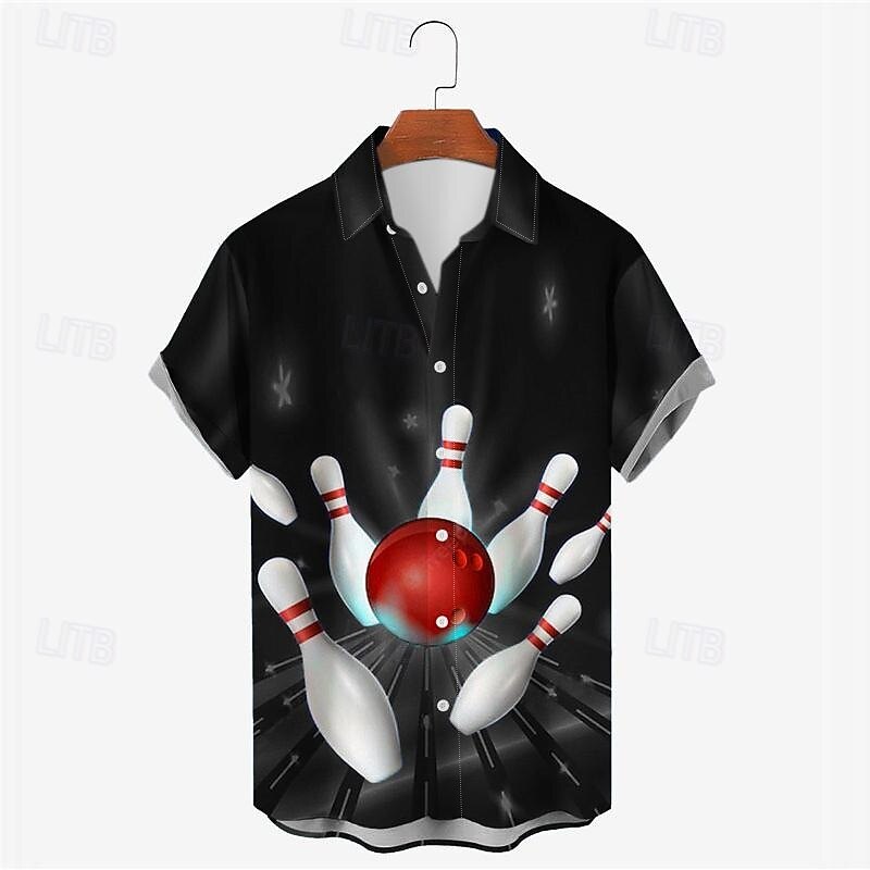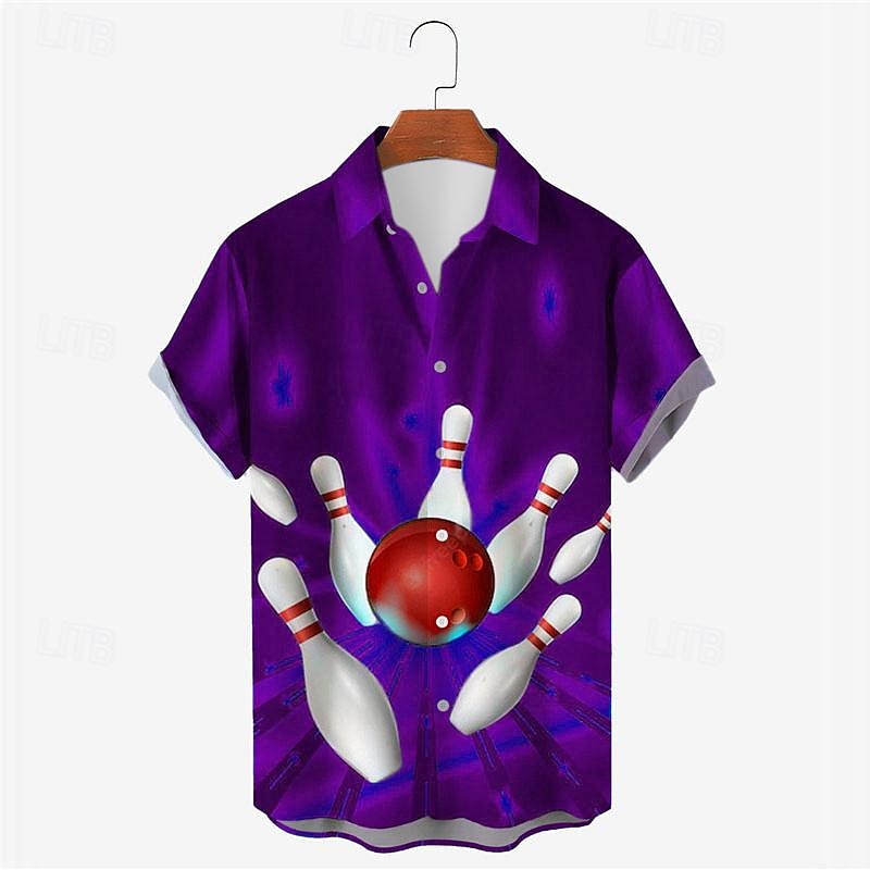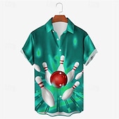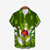 More information about Men's Graphic Prints Bowling Ball Shirt Short Sleeves Shirt Turndown Outdoor Street White + Green Black Yellow Red Blue Print Button-Down Clothing Apparel Designer Casual Soft Breathable
