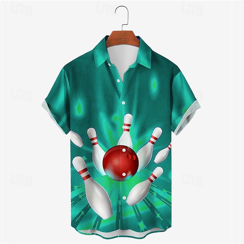 Men's Graphic Prints Bowling Ball Shirt Short Sleeves Shirt Turndown Outdoor Street White + Green Black Yellow Red Blue Print Button-Down Clothing Apparel Designer Casual Soft Breathable 17