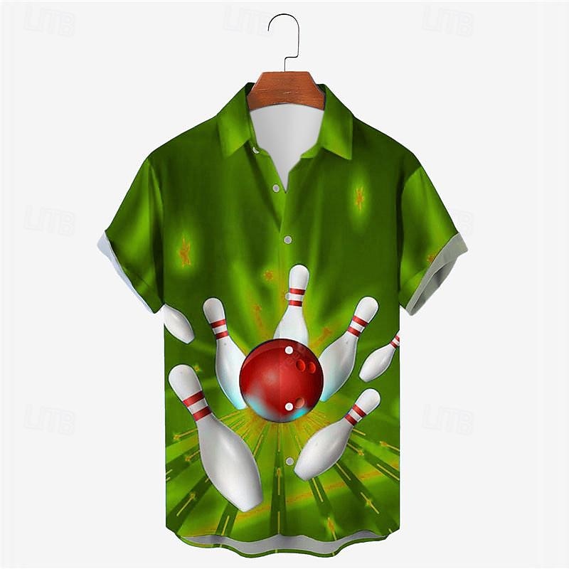 Men's Graphic Prints Bowling Ball Shirt Short Sleeves Shirt Turndown Outdoor Street White + Green Black Yellow Red Blue Print Button-Down Clothing Apparel Designer Casual Soft Breathable 15