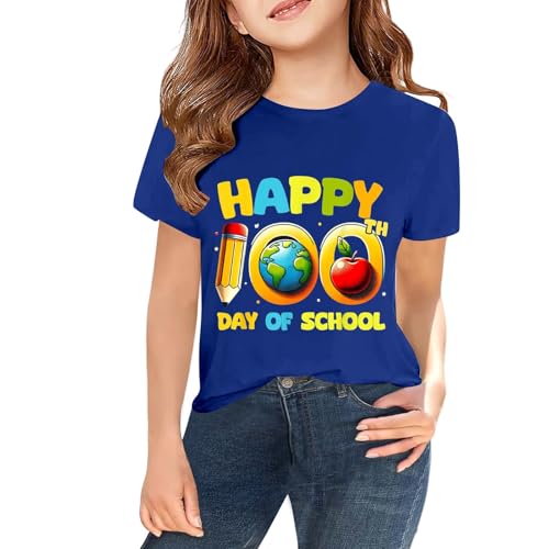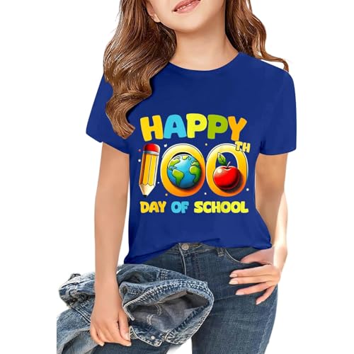 HOT ! Girls Happy 100 Day Shirts Loving School Inspirational Graphic First Day of School Casual Celebration Solid Color Tops