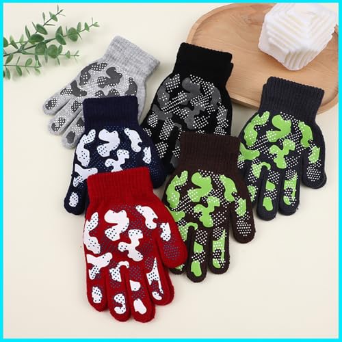 6 Pairs Girls Boys Magic Stretch Gripper Gloves Stretch Winter Kids Gloves Camouflage Full Fingers Glove for Boys 5-8 Years old Winter Camo Glove for Children 7