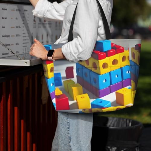 Colorful Building Blocks Large capacity beach bag with zipper, perfect for grocery bag pool gym travel shopping foldable beach travel bag, 6
