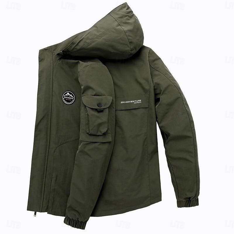 Highlights [Fabric] Constructed from a water-resistant and durable fabric, this men's outdoor jacket is designed to withstand various weather conditions while ensuring comfort and protection. The thermal warm fleece lining provides additional insulation, ideal for keeping you warm during cold seasons. [Fit] The jacket features a regular fit that accommodates a wide range of body types, allowing for layering while maintaining freedom of movement. Adjustable elements like the hood's drawstring and velcro cuffs ensure a tailored fit that can adapt to your needs. [Design Highlights] The tactical jacket comes with a full-front zipper covered by a storm flap to enhance windproof capabilities. A badge on the chest adds a subtle touch of style. Functional details include multiple pockets, including a convenient pocket on the sleeve for quick access to essentials, merging practicality with modern design. [Occasions] Perfect for outdoor activities such as hiking, sports, or tactical missions, this jacket suits a variety of outdoor occasions. Its solid color and versatile design make it suitable for blending with different outfits, providing both style and functionality for outdoor enthusiasts. [Size Range] Available in a wide range of sizes from S to 5XL, this jacket is designed to cater to different body types, providing a comfortable fit for everyone. Whether for winter or autumn, this jacket is a practical choice for those seeking reliable outdoor wear.
