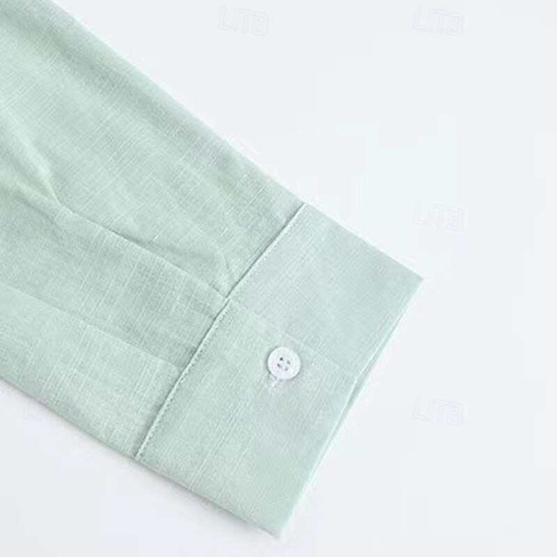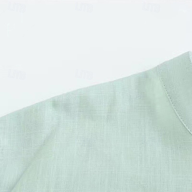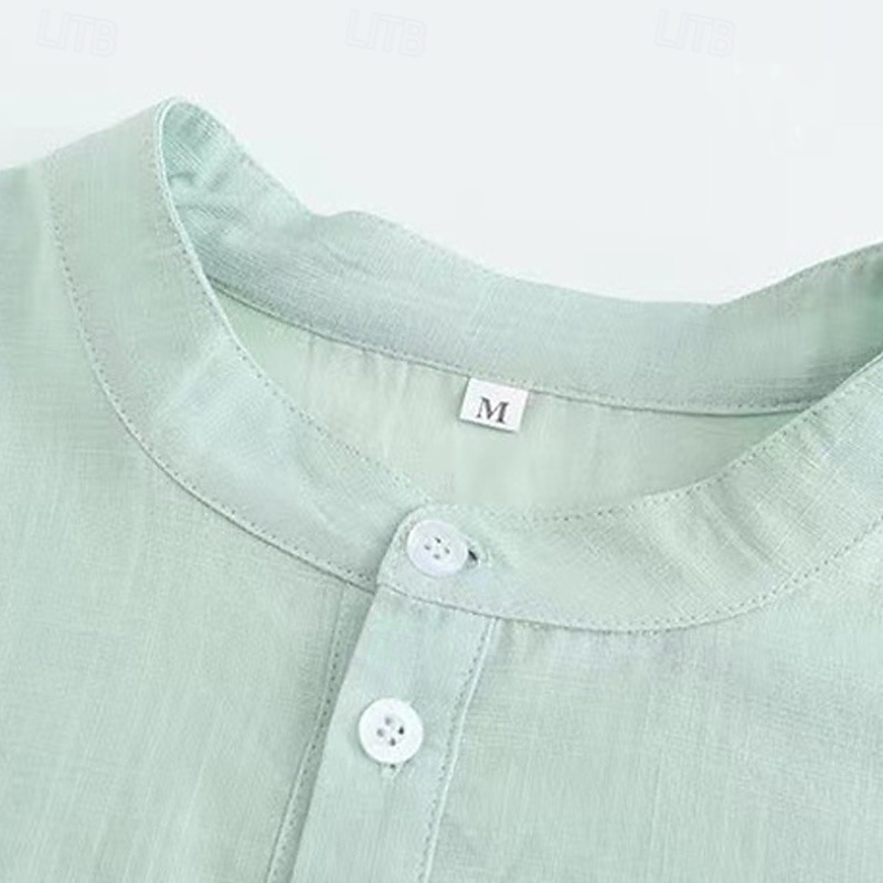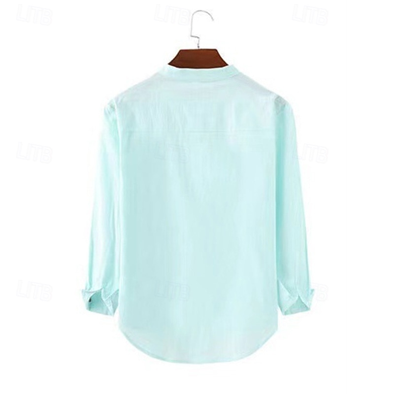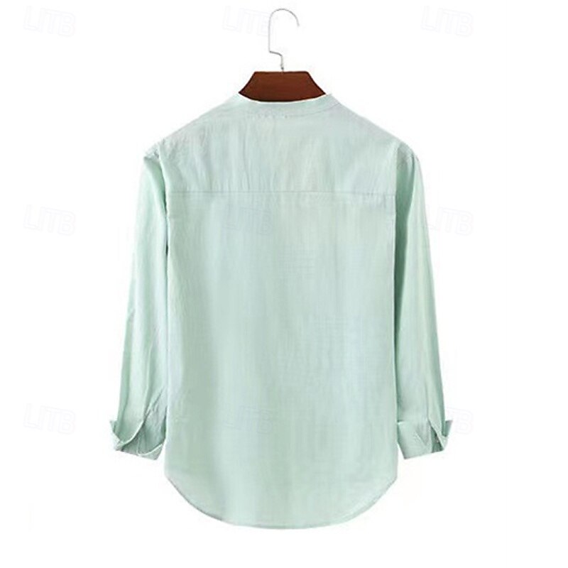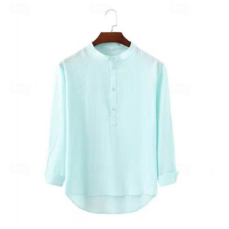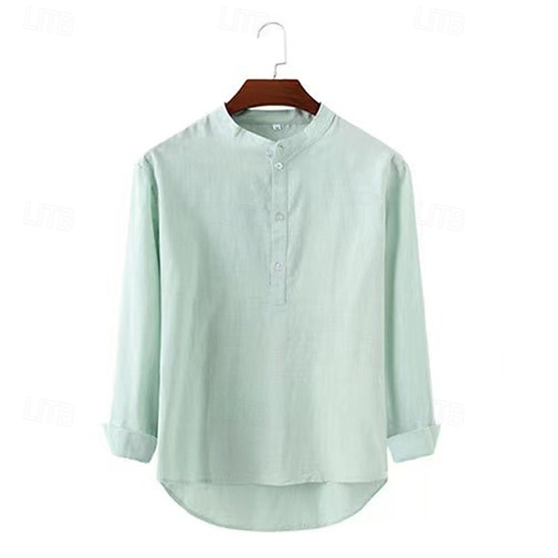 More information about Men's Shirt Popover Shirt Summer Shirt Casual Shirt Beach Shirt Black White Light Green Light Blue Long Sleeve Plain Band Collar Vacation Hawaiian Button-Down Clothing Apparel Cotton Cotton Blend