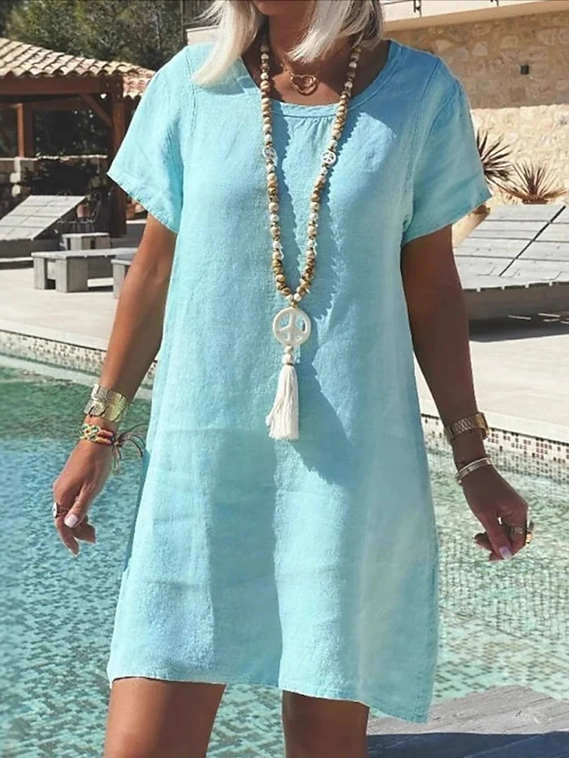 More information about Women's Mini Dress White Dress Cotton Linen Dress Vacation Casual Holiday Form Fit Plain Short Sleeve Crew Neck White Light Blue Summer Spring