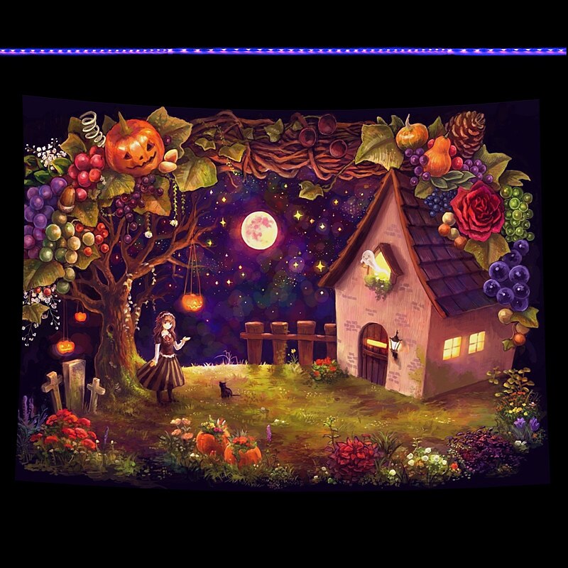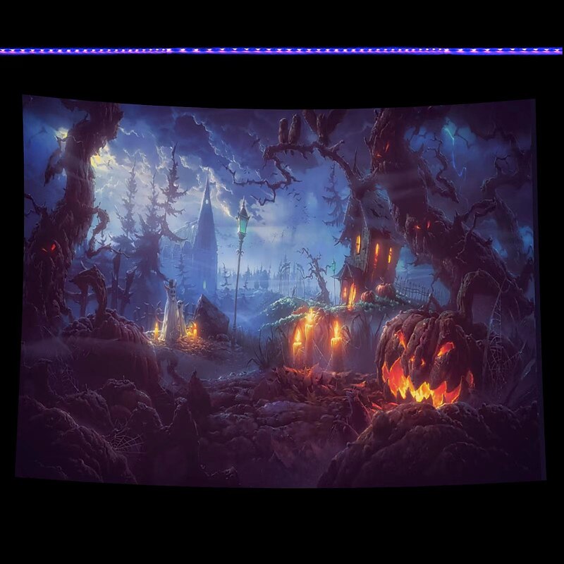 HOT ! Halloween Decorations Backlight Tapestry Jack O Lantern UV Reactive Hanging Fluorescent Home Decoration Background Cloth Art Home Bedroom Living Room