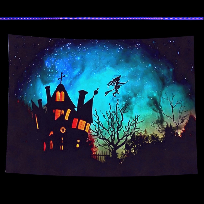 Halloween Decorations Backlight Tapestry Jack O Lantern UV Reactive Hanging Fluorescent Home Decoration Background Cloth Art Home Bedroom Living Room 10