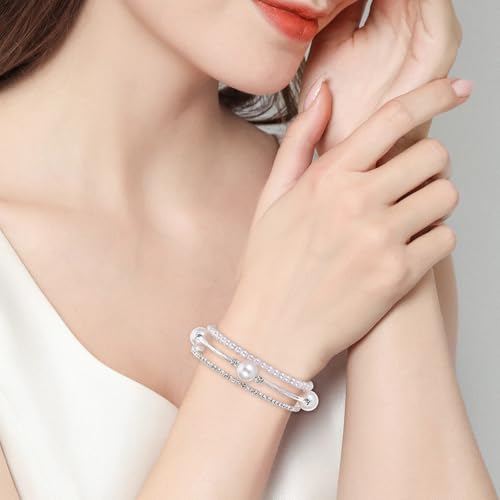 HOT ! Pearl Bracelets for Women Silver Silver Stretch Bracelets for Women Stackable,Three Layer Bracelet with Pearls and Rhinestones Exquisite Jewelry Decoration