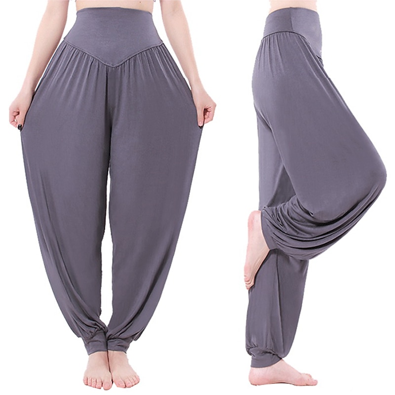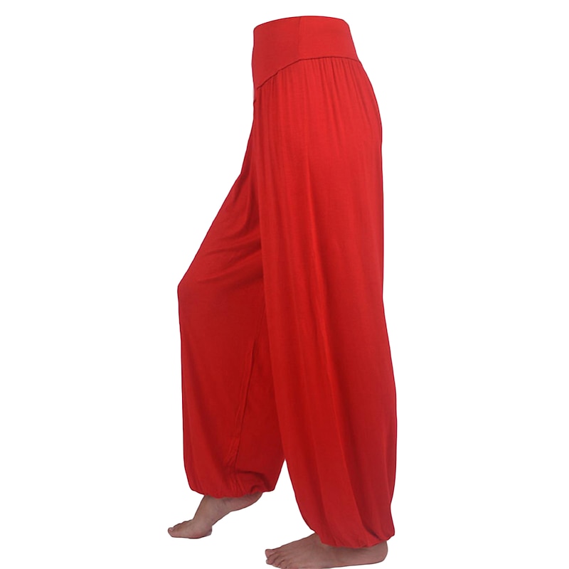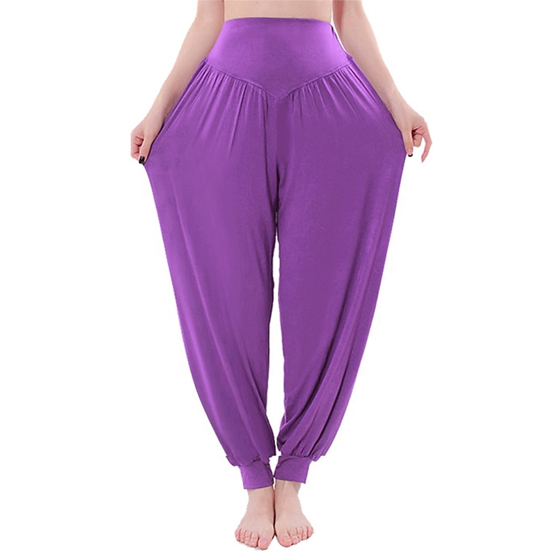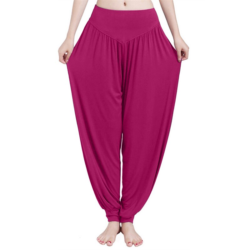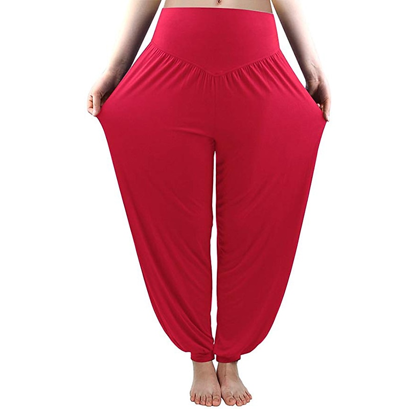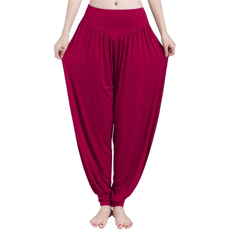 Highlights [Fabric] : Crafted from a luxurious blend of spandex and modal, these harem pants offer high elasticity and softness, ensuring a breathable and quick dry experience. The moisture-wicking properties keep you comfortable and dry, ideal for active and leisurely wear. [Fit & Style] : Designed with a loose fit, these pants boast a relaxed silhouette that drapes elegantly with a slightly tapered leg. The high-rise elastic waistband enhances comfort and provides flexibility, accommodating a variety of body shapes. The solid color design adds a sophisticated touch suitable for both indoor and outdoor activities. [Design Highlights] : Featuring a classic harem style, these pants stand out with their unique draped fit, offering a chic and airy look. The lightweight and antistatic fabric enhances ease of movement, making them perfect for a variety of activities. [Occasions] : Perfect for activities such as belly dance, yoga, Pilates, Zumba, and general fitness routines. Ideal for vacations, street style outings, or casual athleisure days, these pants ensure you stay stylishly comfortable across all settings. [Size Range] : Available in a wide array of colors including Royal Blue and Burgundy, and sizes from S to XXXL, these pants cater to a diverse range of preferences and body types.